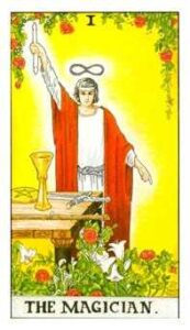 The Magician specializes in manifesting reality. He takes you by the hand and moves you along toward your life direction. This can sometimes be an inch-worm process through your adventures.